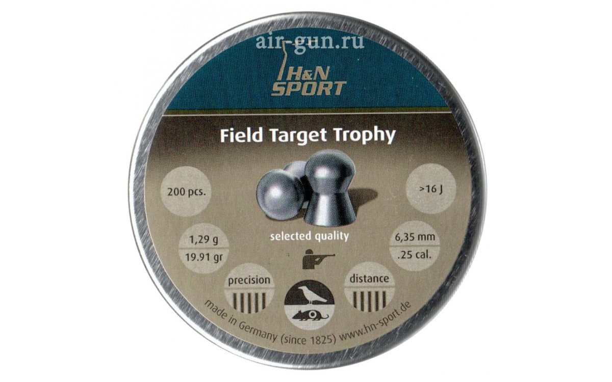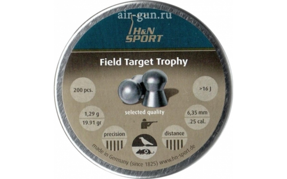 Пули пневматические H&N Field Target Trophy 6,35 мм 1,29 грамма (200 шт.) - Свинцовые пули с медным покрытием защищают ствол оружия от загрязнения. Поверхность пули гладкая. Пули используются для стрельбы на дальние расстояния. Характеризуются высокой точностью полета и повышенной пробивающей способностью. Оптимальная область использования - Field Target