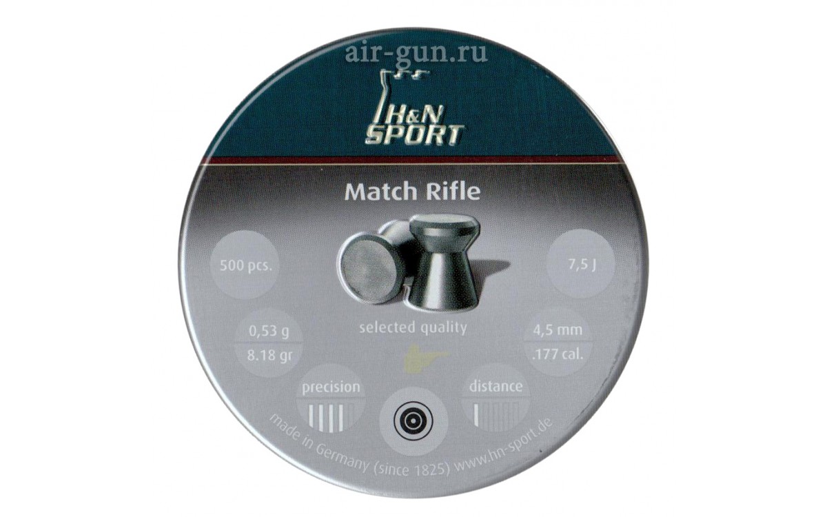 Пули h n 4.5 мм Match Rifle калибра 4,5 мм весом 0,53 грамма. Это высокоточная h n match rifle для соревнований и тренировок для стрелков, нацеленных на конечный результат. Высокая кучность, четкие края пробоин, благодаря плоской головке и превосходное соотношение цены и качества. Поверхность пули H&N Match Rifle гладкая. Пули h n match rifle предназначены для стрельбы из пневматических винтовок.