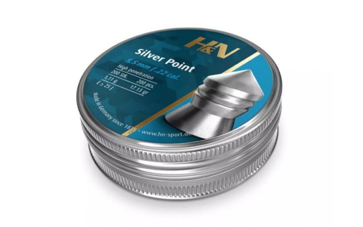 Пули пневматические H&N Silverpoint 5,5 мм 1,11 грамм (200 шт.) используются для охоты и спортивной стрельбы как стрелками любителями, так и профессиональными спортсменами. Производство Германия.
