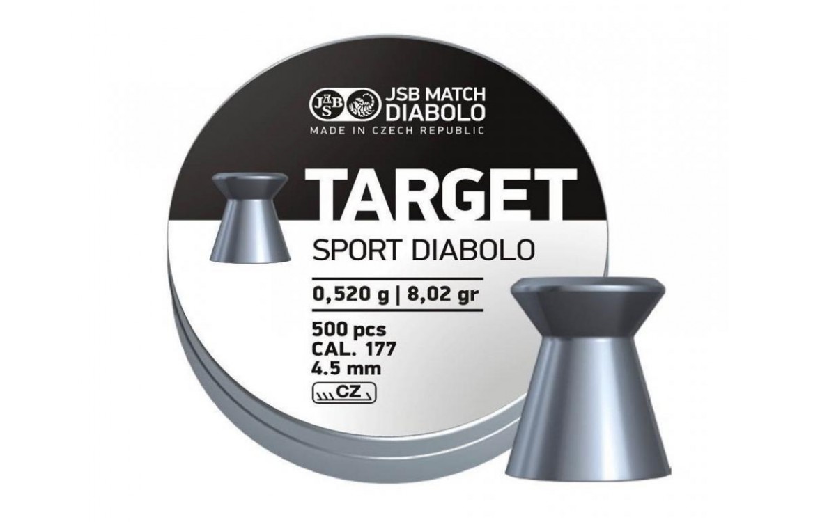 Пули JSB Target Sport Diabolo имеют калибр 4,5 мм и представляют собой свинцовые пули, а вес этих самых пуль составляет 52 грамма. Отличительная черта формы выражается в плоской головной части. Предназначены пули JSB Target Sport Diabolo для проведения тренировок, а также спортивных и иных развлекательных стрельб. При этом расположены данные пули должны быть в мощных пневматических винтовках. В упаковке 500 штук.