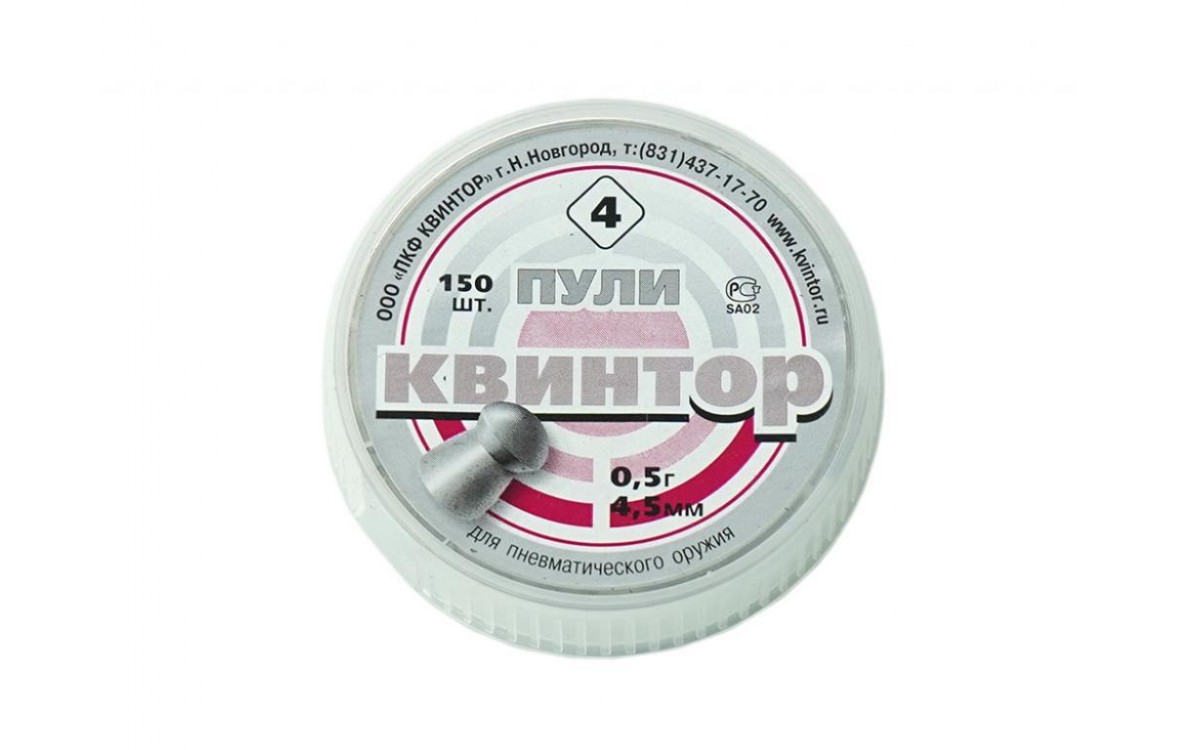 Пули для пневматики Квинтор круглая головка 4,5 мм 0,53 гр 150 шт