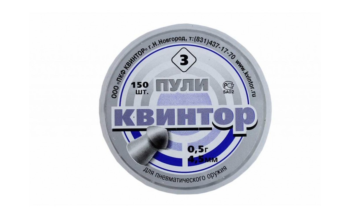 Пули для пневматики Квинтор оживальная головка 4,5 мм 0,53 гр 150 шт