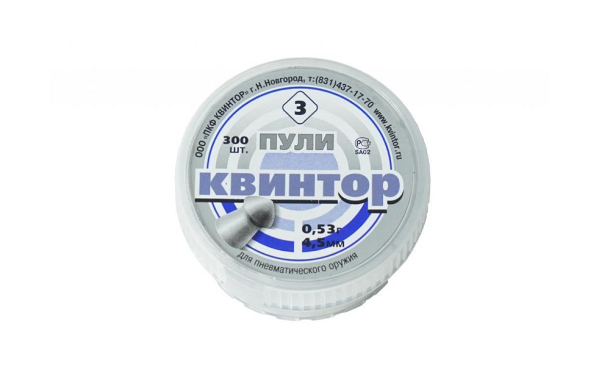 Пули для пневматики Квинтор оживальная головка 4,5 мм 0,53 гр 300 шт
