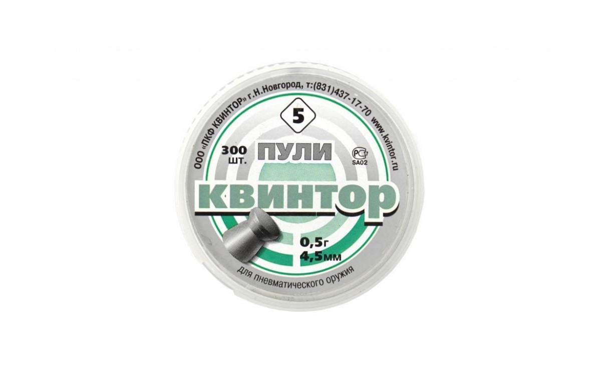 Пули для пневматики Квинтор плоская головка 4,5 мм 0,53 гр 300 шт