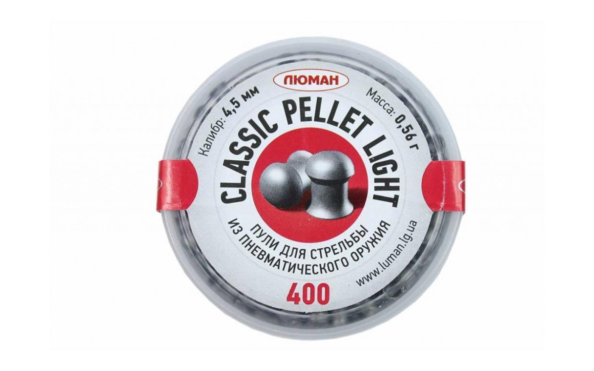 Люман пули для пневматики купить можно у нас. Пули пневматические Люман Classic Pellets Light - круглоголовые свинцовые пули, которые используются для стрельбы из пневматического оружия. Калибр пуль 4,5 мм, масса 0,56 грамма. В банке 400 шт.