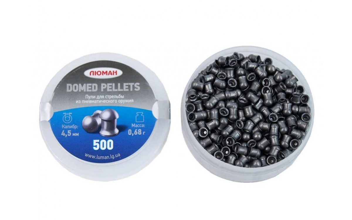пули люман купить можете у нас онлайн. Купить пули для пневматики Люман можете у нас по лучшей цене. Пули пневматические Люман Domed pellets - круглоголовые свинцовые пули, которые используются для стрельбы из пневматического оружия. Калибр пуль 4,5 мм, масса 0,68 грамма. В банке 500 шт.