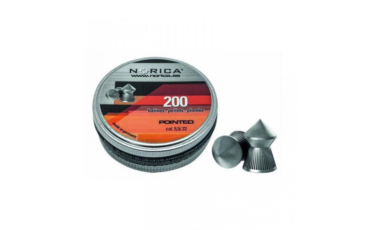 Пули пневматические Pointed Norica - свинцовая пуля с острой головной частью, обеспечивает ровное отверстие в бумажной мишени. Предназначена для пневматических винтовок и пистолетов калибра 5,5 мм.