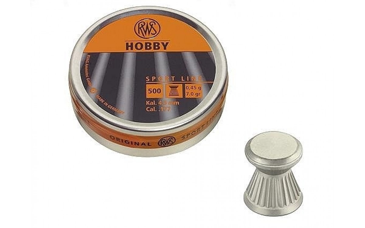 Свинцовые пневматические пули RWS Hobby калибра 4,5 мм массой 0,45 граммов (7,0 гран). Популярная пуля с рифлёным хвостовым опереньем для стрельбы из пневматической винтовки предназначена для амбициозных стрелков-любителей. Такая комбинация взвешенных свойств боеприпаса и выгодной цены привлекает покупателя. Пуля марки RWS Hobby пригодна как для плинкинга, так и для охоты. Качественные и хорошо сбалансированные пули.