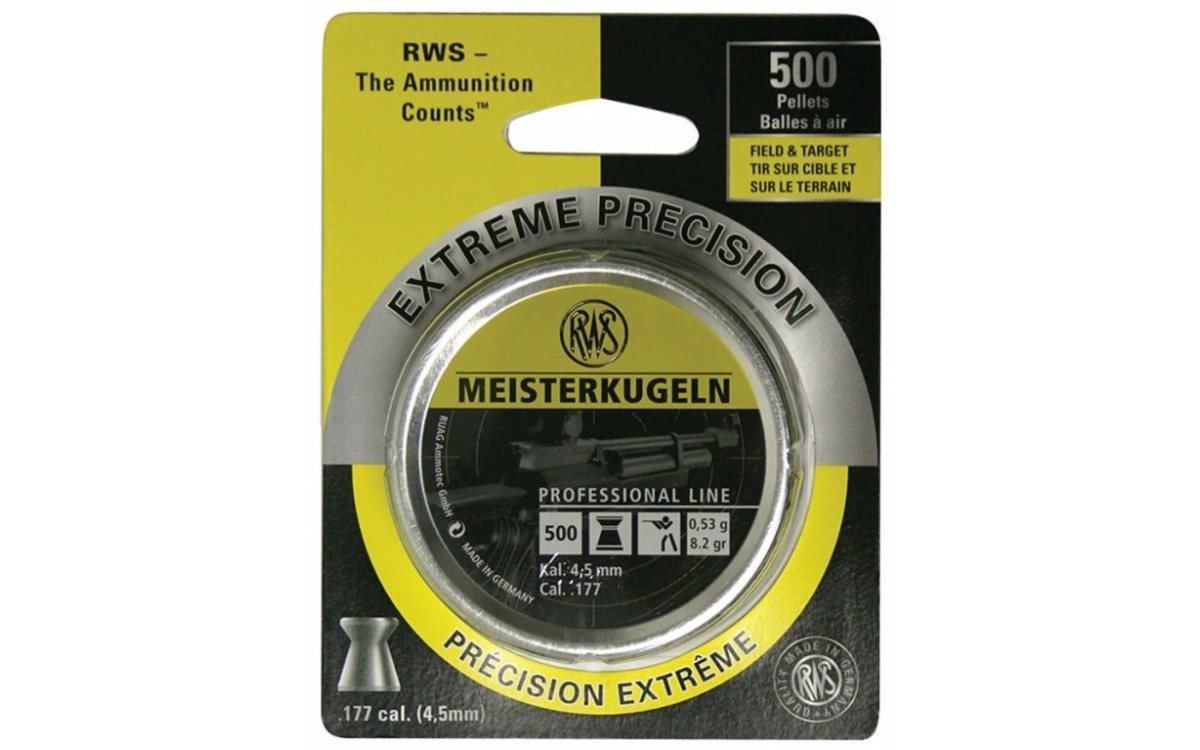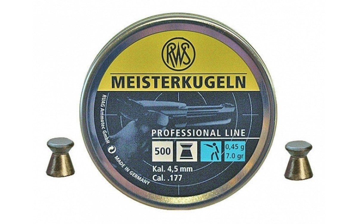 Свинцовые пневматические пули RWS Meisterkugeln калибра 4,5 мм весом 0,53 грамма. Эти пули Мастер-класса от компании RWS - это высокопрецизионные пули для стрельбы из пневматической винтовки, которую используют серьёзные спортсмены-стрелки. Существенная модернизация техники и технологий способствовала заметному улучшению качества и обеспечила более высокую прецизионность пуль RWS Meisterkugeln. Кроме того применение композитных материалов, а также оптимизация обработки поверхности пуль данного класса является гарантией сохранения на продолжительное время блеска и пули RWS Meisterkugeln. Точность размеров и веса при производстве изделий в компании RWS достигается благодаря непрерывному и строгому контролю качества на всех этапах. Пули RWS Meisterkugeln отлично подходят для спортивной имитации охоты, а также для стрельбы по мишеням, в том числе и по падающим мишеням.