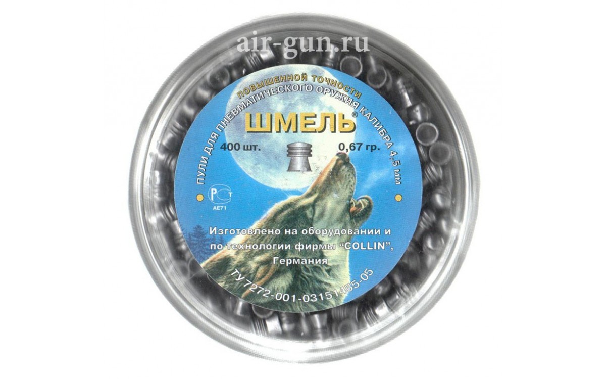 Пули пневматические Шмель 4,5 мм 0,67 грамма (400 шт.) повышенной точности - остроголовые пули повышенной точности, выделяются отличной пробивающей способностью на длинных дистанциях, хорошо устойчива в полёте. Предназначены для охоты и борьбы с мелкими вредителями, грызунами, воронами и т.п. Рекомендуется для ружей с начальной скоростью более 190 м/с.