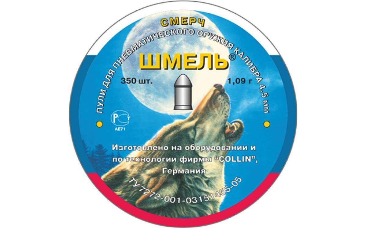 Пули пневматические Шмель 4,5 мм 1,09 грамма (350 шт.) - тяжелые свинцовые пули российского производства, используемые для охоты. Пули Шмель характеризуют отличные баллистические показатели. Калибр пуль 4,5 мм. Вес 1,09 гр. В банке 350 шт.