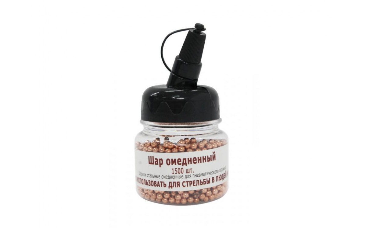Шарики BB кал. 4,5 мм. (1500 шт.) Стальные шарики с медным напылением. Предназначены для развлекательной и тренировочной стрельбы из гладкоствольного пневматического оружия. Изготовлены из стали и имеют диаметр 4,43 мм. Покрыты тонким слоем меди для уменьшения трения и предотвращения коррозии. Поверхность шарика идеально круглая, полированная, без рытвин и вмятин.