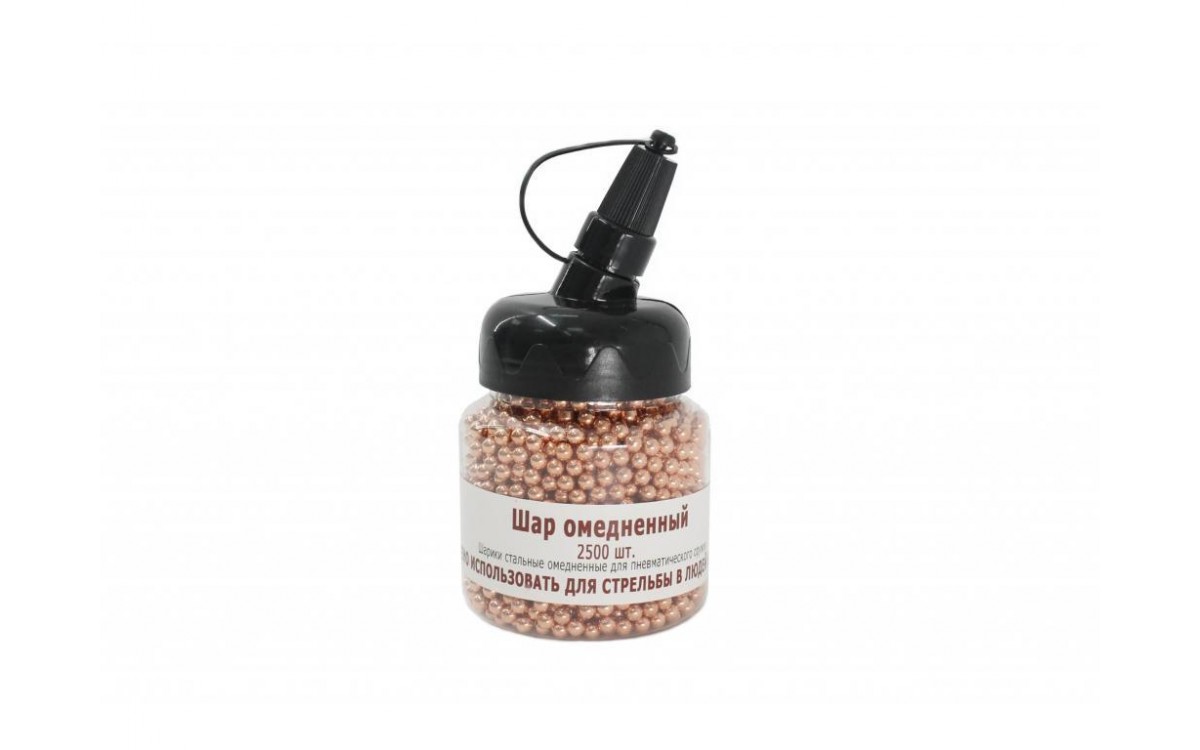 Шарики BB кал. 4,5 мм. (2500 шт.) Стальные шарики с медным напылением. Предназначены для развлекательной и тренировочной стрельбы из гладкоствольного пневматического оружия. Изготовлены из стали и имеют диаметр 4,43 мм. Покрыты тонким слоем меди для уменьшения трения и предотвращения коррозии. Поверхность шарика идеально круглая, полированная, без рытвин и вмятин.