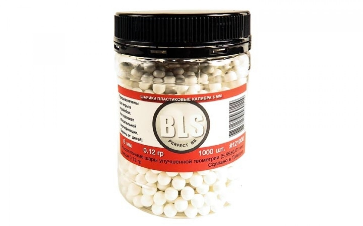 Шарики страйкбольные пластиковые 6 мм BLS 0,12 гр белые 1000 шт