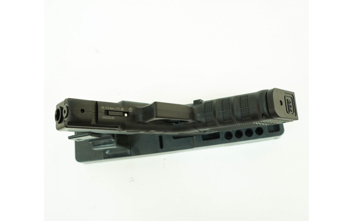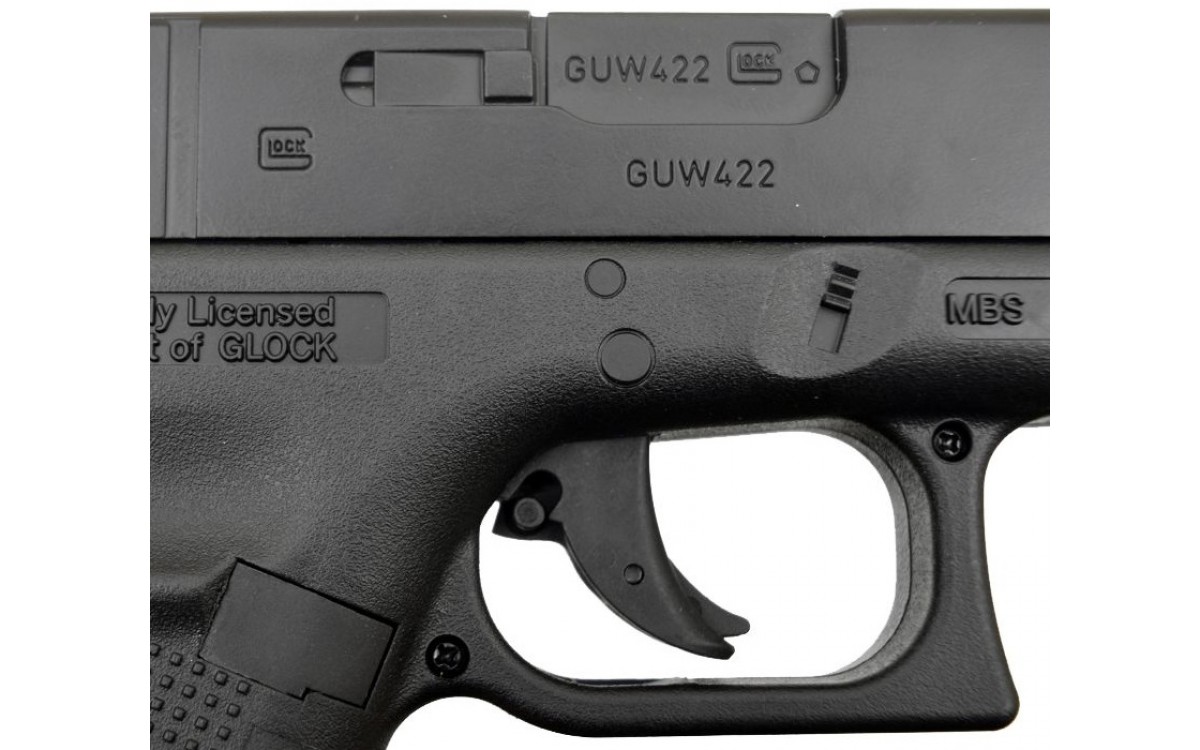 На корпусе Umarex Glock практически нет изменений, которые могли бы выдать его как пневматическую модель, за исключением некоторых маркировок и скрытого винта.