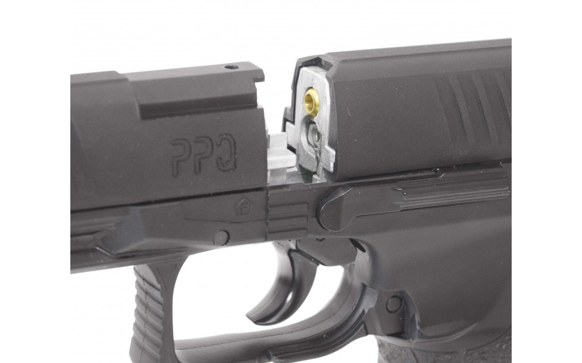 Кроме того, пневматический пистолет Umarex Walther PPQ оборудован пассивной системой безопасности. При открытии затвора блокируется спуск, пока кожух не вернется на место.